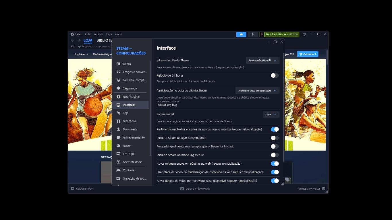 Outra melhoria muito pedida finalmente foi atendida: o Português (Brasil) agora aparece como opção de idioma do perfil. Embora isso pareça simples, o impacto é enorme. A partir de agora, muitos jogos iniciam automaticamente em PT-BR, sem que você precise alterar o idioma dentro do game toda vez.